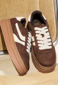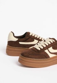 WIDE FIT - CHUNKY PLATFORM GUMSOLE LACE UP CASUAL TRAINERS . - Športni copati - chocolate brown