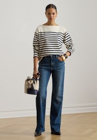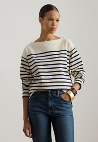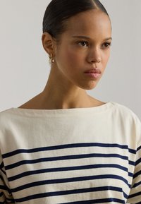 STRIPED JERSEY BOATNECK TOP - Majica z dolgimi rokavi - mascarpone cream/refined navy