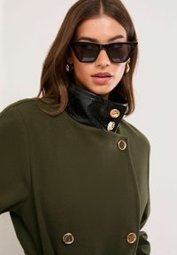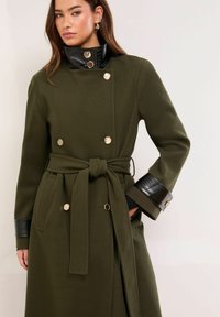 PETITE FIT - CROC EFFECT FUNNEL NECK BELTED - Klasični plašč - olive green