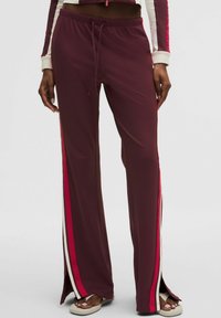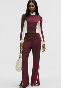 STRIPED SLIM-FIT MID-RISE TRACK - Spodnji deli trenirk - burgundy bay light ivory oxford red