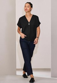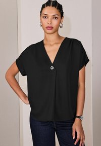 REGULAR FIT - SHORT SLEEVE V-NECK - Bluza - black