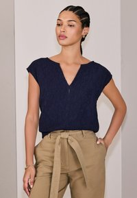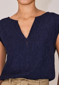 REGULAR FIT - TEXTURE NOTCH NECK - Navadna majica - navy