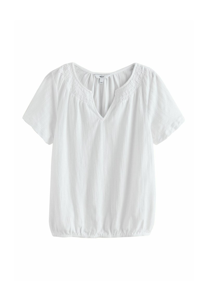 PETITE FIT - SHORT SLEEVE NOTCH NECK SHIRRED BUBBLEHEM - Bluza - white
