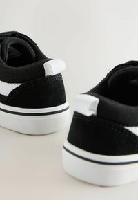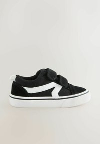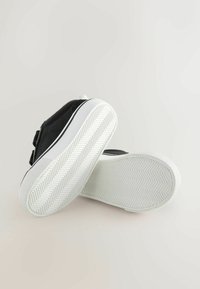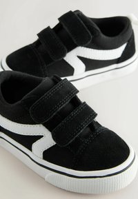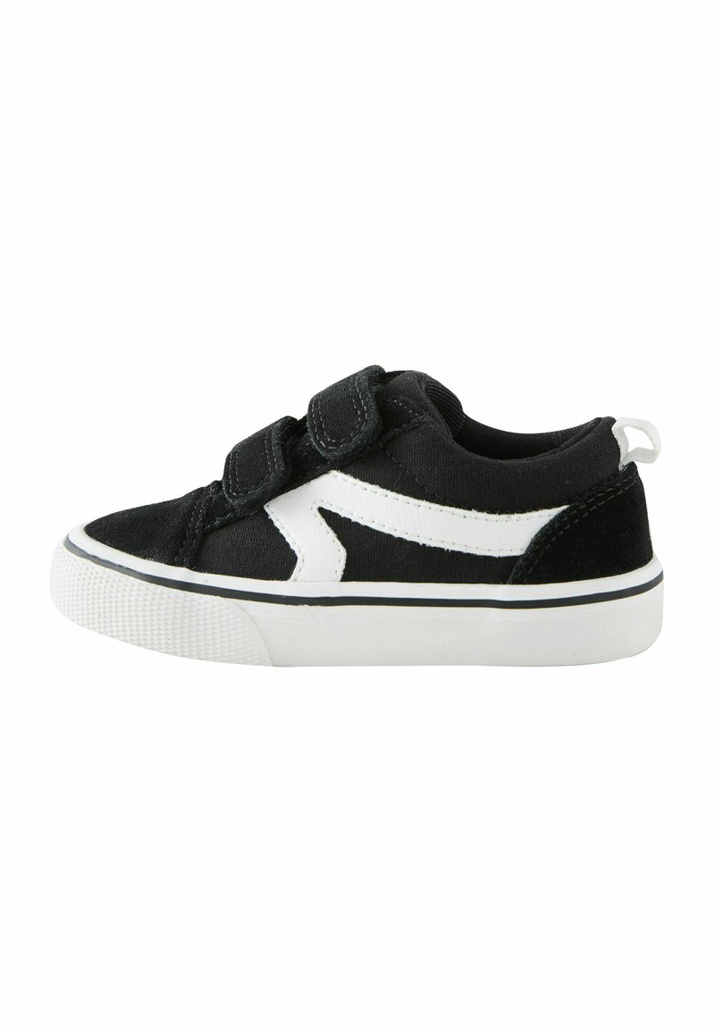Črne in bele otroške superge z dvema ježkoma, bele podplate z črno črto in belim zigzag vzorcem na strani.