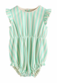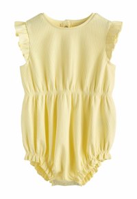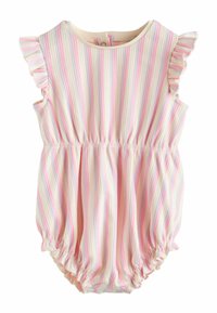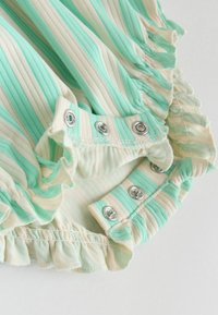 Set štirih otroških pajac v pastelnih barvah: roza z črtami, modra, zelena z črtami in rumena. Imajo volančke na rokavih in elastični pas.