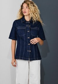 REGULAR FIT - SHORT SLEEVE - Bluza z gumbi - rinse denim