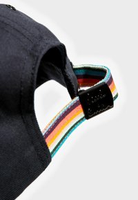 Mornarji modra kapa s ukrivljenim robom, ki ima šest panelov in barvit pristranski pašček na hrbtni strani za prilagoditev.