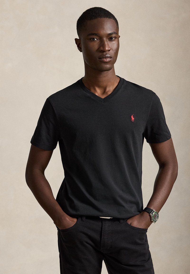 CUSTOM SLIM FIT JERSEY V-NECK T-SHIRT - Navadna majica - black