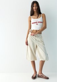 PULL&BEARWHITE LONG SLEEVE WITH GRAPHIC - T-SHIRT - Majica z dolgimi rokavi - white