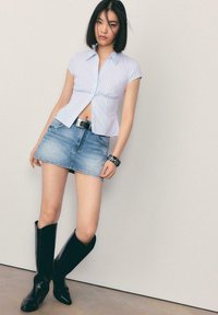 Novoheart_outlinedStradivariusSHORT SLEEVE BOAT NECK T-SHIRT WITH GATHERS 07055550 - Navadna majica - dark brown9,99 €