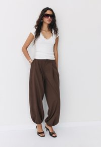 Novoheart_outlinedStradivariusSHORT SLEEVE BOAT NECK T-SHIRT WITH GATHERS 07055550 - Navadna majica - white9,99 €