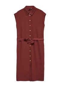 Zelena obleka s kratkimi rokavi, gumbnim zapenjanjem, pasom in stranskimi razporki. Narejena iz lahkega materiala, ima ovratnik in strukturirano silhueto.