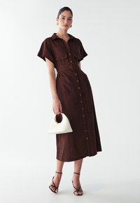 Odlična dnevna lahka obleka. Manjše postave potrebujejo pete. Velikost se prilega postavi in lepo pade ob telesu.
